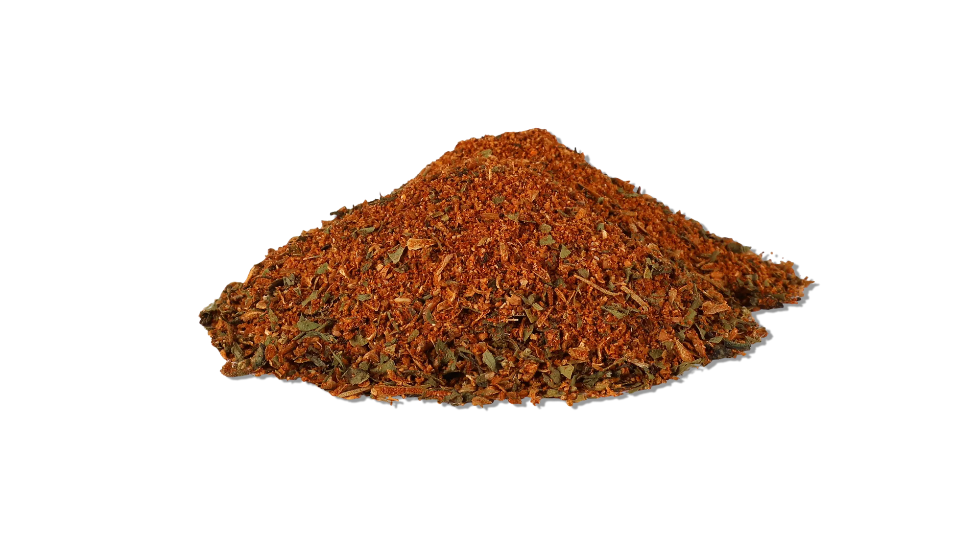 Kreuzkümmel, Chili, Oregano, Knoblauch, Thymian, Pfeffer, Paprika.